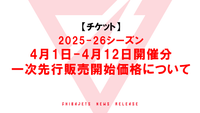 【チケット】2025-26シーズン 4月1日ー4月12日開催分の一次先行販売開始価格について