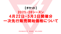 【チケット】2025-26シーズン 4月22日ー5月3日開催分の一次先行販売開始価格について