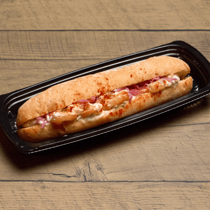 香ばしいバゲットにジューシーなエビタルタルがたっぷり詰まった贅沢サンド!一度食べたらやみつきになる美味しさです。