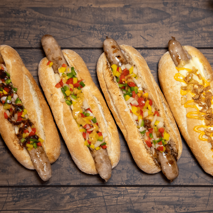 米粉を配合した外はカリッ中はフワフワのソフトフランスパンに、こだわりのスパイスと粗挽き肉を使った23cmのソーセージを挟んで焼き上げたジューシーなホットドッグ。ブラジリアンソーセージ、野菜を刻んだソースやクラフトホットソース、チーズなどのバリエーションをお楽しみ下さい。