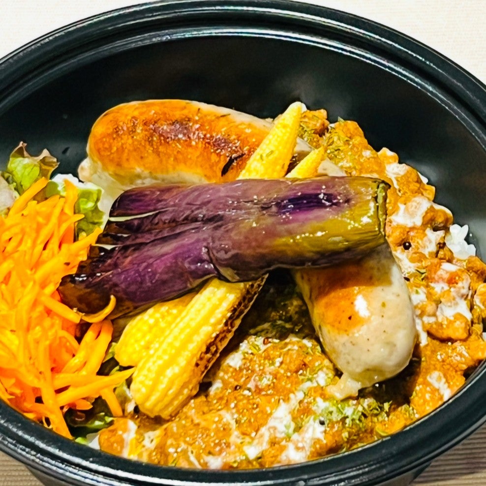甘辛に仕上げてあるキーマカレー。沢山の方に食べていただきたく辛さは控えめにしております。おすすめはソーセージと野菜がのった全部のせです!