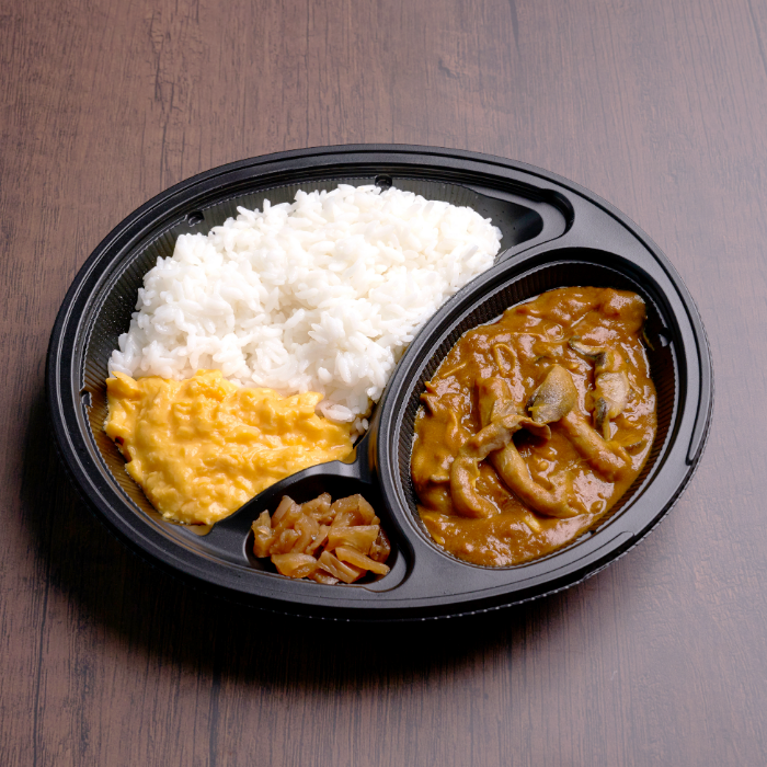 香ばしくソテーしたきのこをたっぷりカレーに入れちゃいました!ふんわり卵とご飯といっしょに頬張ると、旨みと甘みが口いっぱいに広がります!