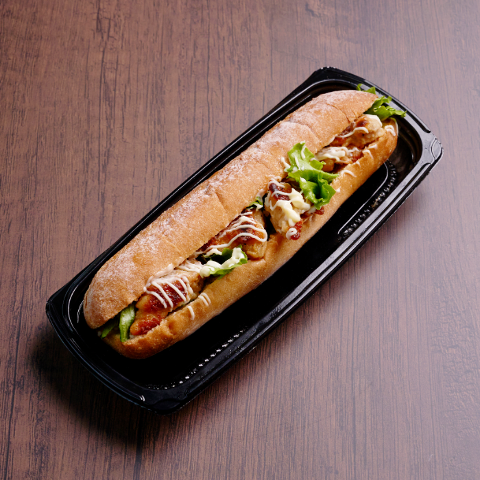 外は香ばしく中はジューシーな照り焼きチキンを大きめカットでサンド!甘辛な照り焼きソースがチキンの旨みを引き立てます。