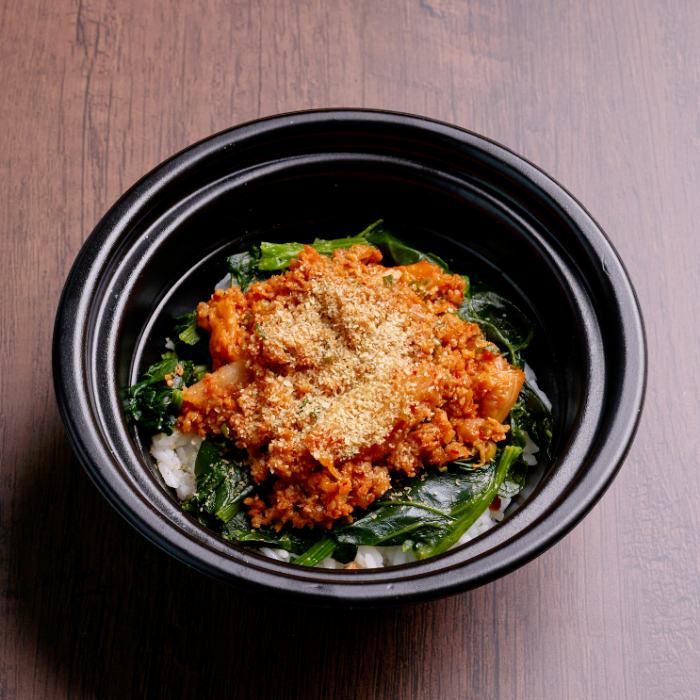キムチのシャキッと食感とそぼろの旨みが見事に融合!一口ごとに広がる旨辛風味が食欲を刺激します!