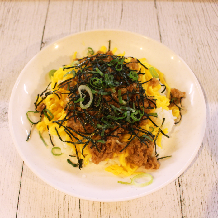 あごだしで鶏そぼろの優しい旨味を引き出しました。錦糸卵とご飯と一緒に口に運べば、ほっとする味わいが広がります。
