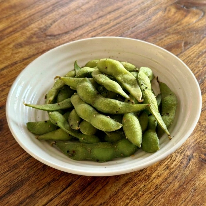 ガーリックとアンチョビが香る枝豆です。ビールとの相性も抜群!