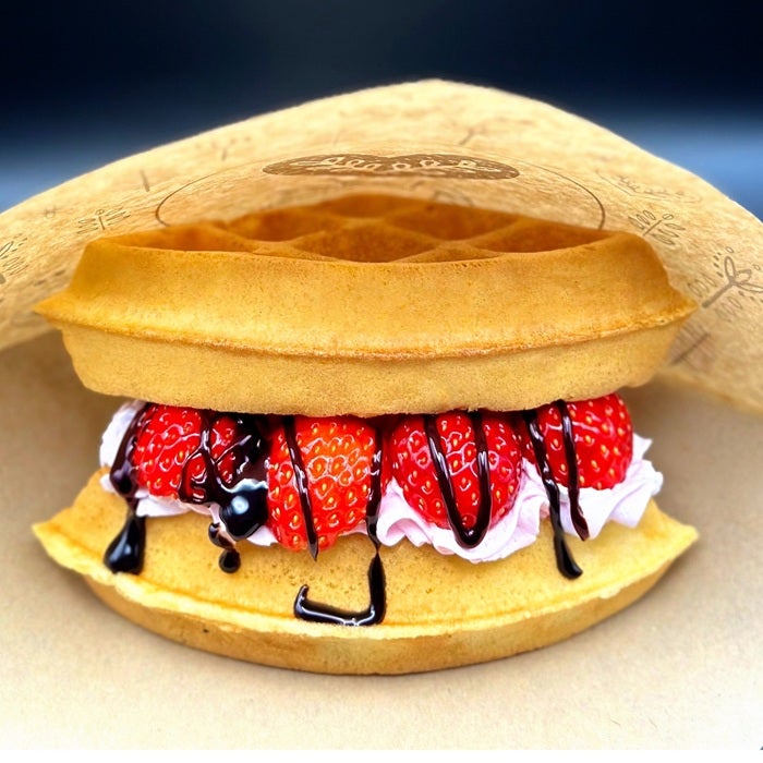 香港発祥のワッフルサンド、格仔餅(ガッチャイベン)専門店です。香港で大人気の不思議食感スイーツで、オーダー毎に焼きあげるため、外はサクサク中はふんわり軽い食感!ぜひお試しください!