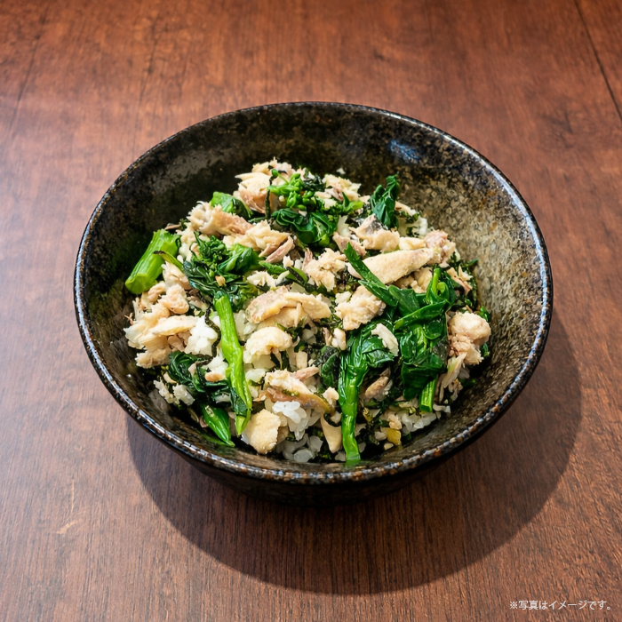 琵琶湖名産の鮎を丸ごと一匹香ばしく焼き上げ、食べやすいようにほぐした丼ぶりです。付け合わせの菜の花の香りと鮎の風味が豊かな丼ぶりをぜひどうぞ!