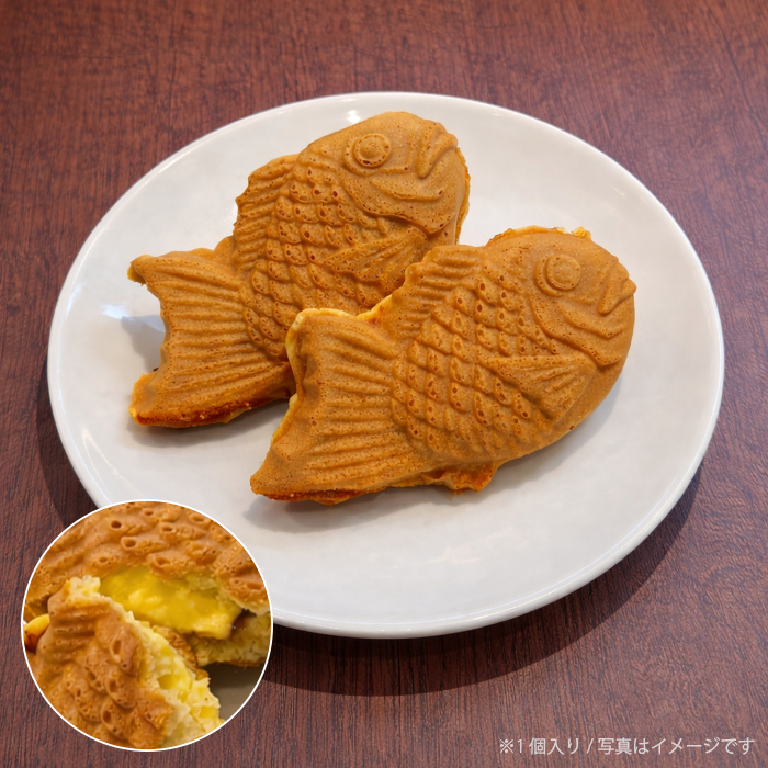 たっしーイチ押しのメイプルシロップが入ったあま~いカスタードたい焼きです!このたい焼きを一口食べたら、いつもブンブンしているたっしーも思わずあまあまになっちゃいます!