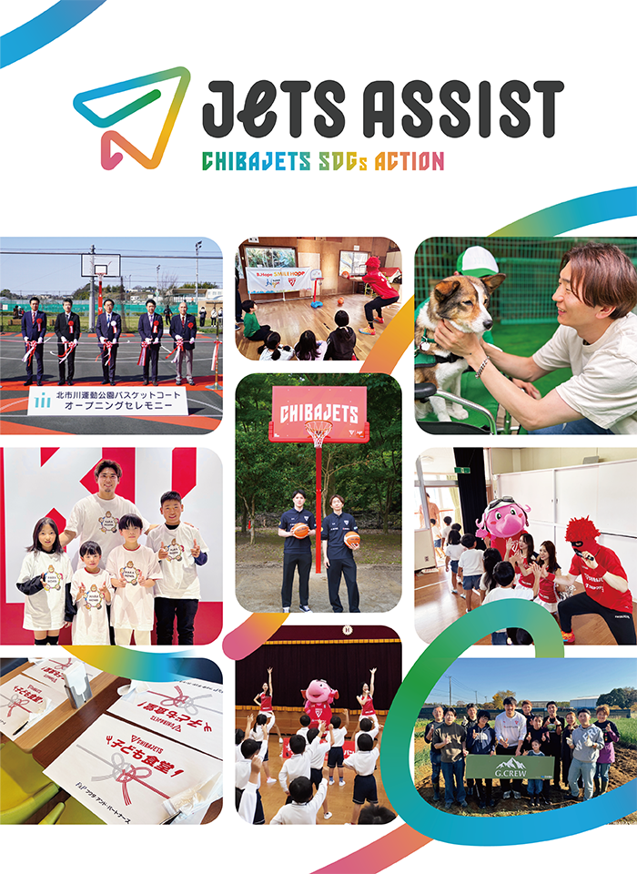 千葉ジェッツは、世界への窓口である千葉県をベースに、「千葉ジェッツふなばしを取り巻く全ての人たちとともにハッピーになる」という理念を掲げています。皆さまからいただいた熱い応援を糧に、「JETS ASSIST」を通じてオフコートでも地域愛着を追求します。地域や企業のハブとなって社会課題を解決する活動を積極的に行い、共に支え合う豊かなコミュニティを創造します。