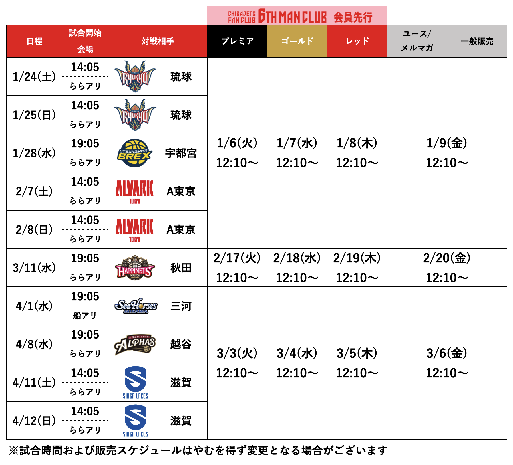 6TH MAN CLUB(ファンクラブ)先行販売期間は1アカウントにつき最大4枚まで購入可能です。