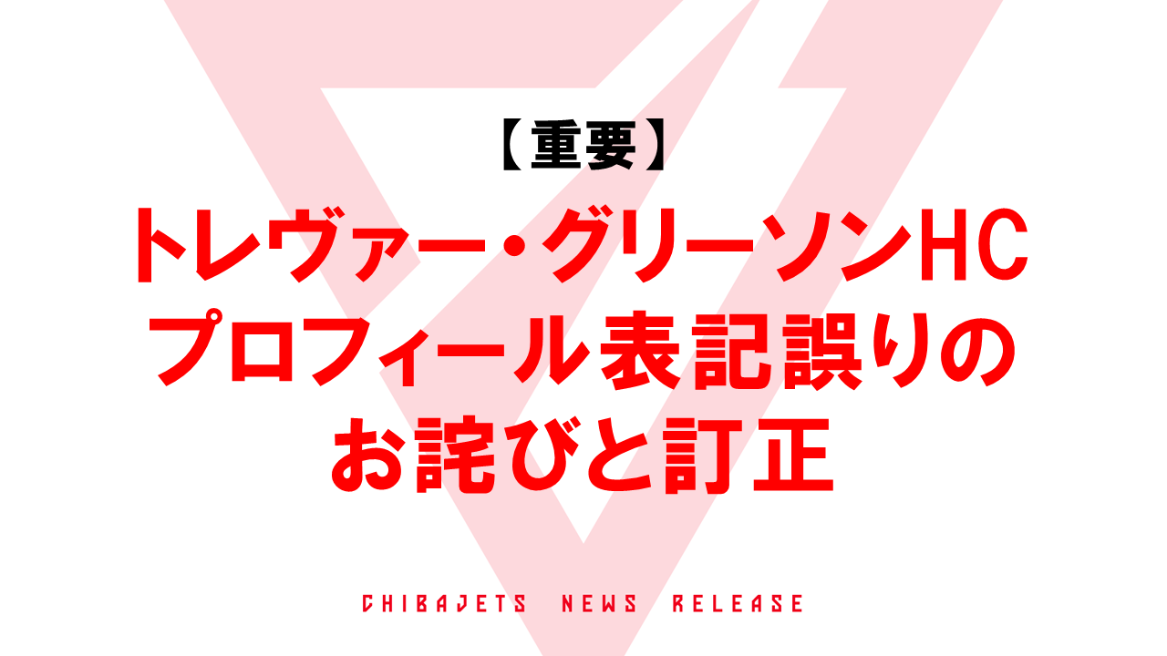 【重要】トレヴァー・グリーソンHCに関するプロフィール表記誤りのお詫びと訂正