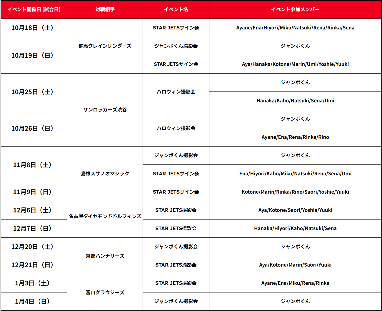 2025-26シーズン「フライトクルー撮影会/サイン会」開催日程のお知らせ(10月~1月前半分)