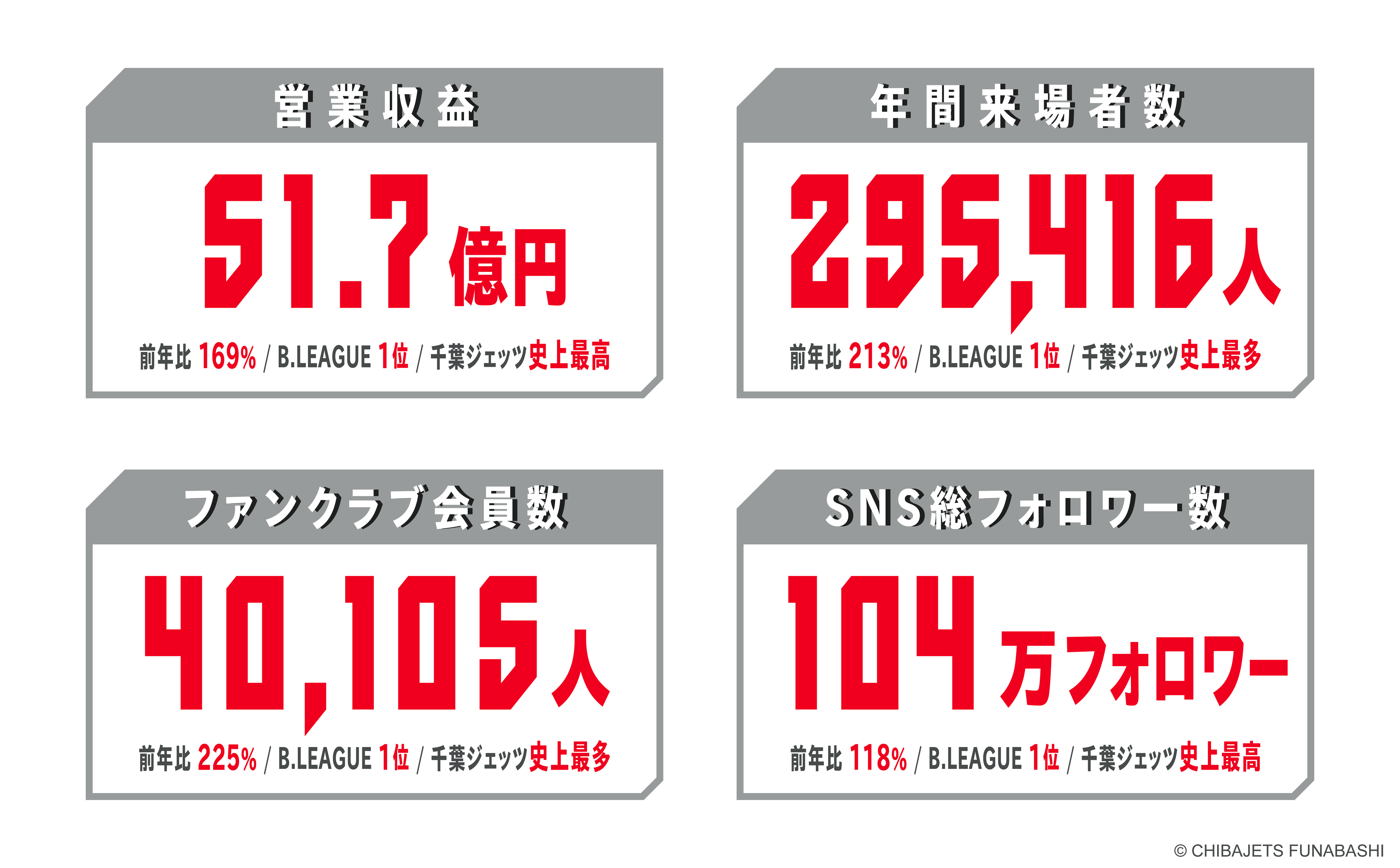 株式会社千葉ジェッツふなばし(代表取締役社長:田村征也 本社:千葉県船橋市)は、良い時も悪い時も私たちを支え続けてくださった皆さまのおかげで、2024-25シーズンにおいて過去最高の事業実績を達成しました。