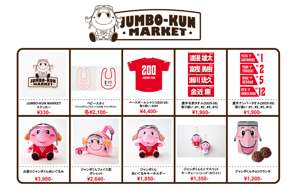 ・ JUMBO-KUN MARKET(※ジャンボくんグッズ中心のお取り扱い)