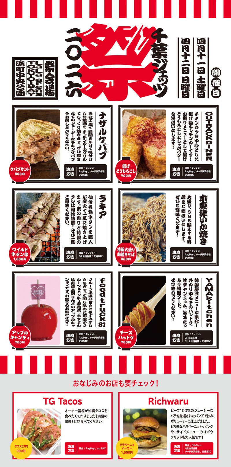 当日のCHIBAJETS GOURMET STAND/KITCHEN CAR STANDの詳細は、下記リンクよりご確認いただけます。