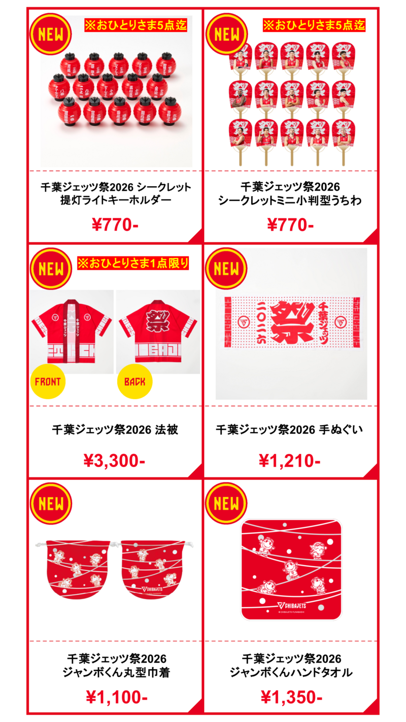 4/11(土)発売の「千葉ジェッツ祭2026」一部商品について 一人でも多くのお客さまのお手に取っていただけますよう、購入点数に制限を設けさせていただきます。