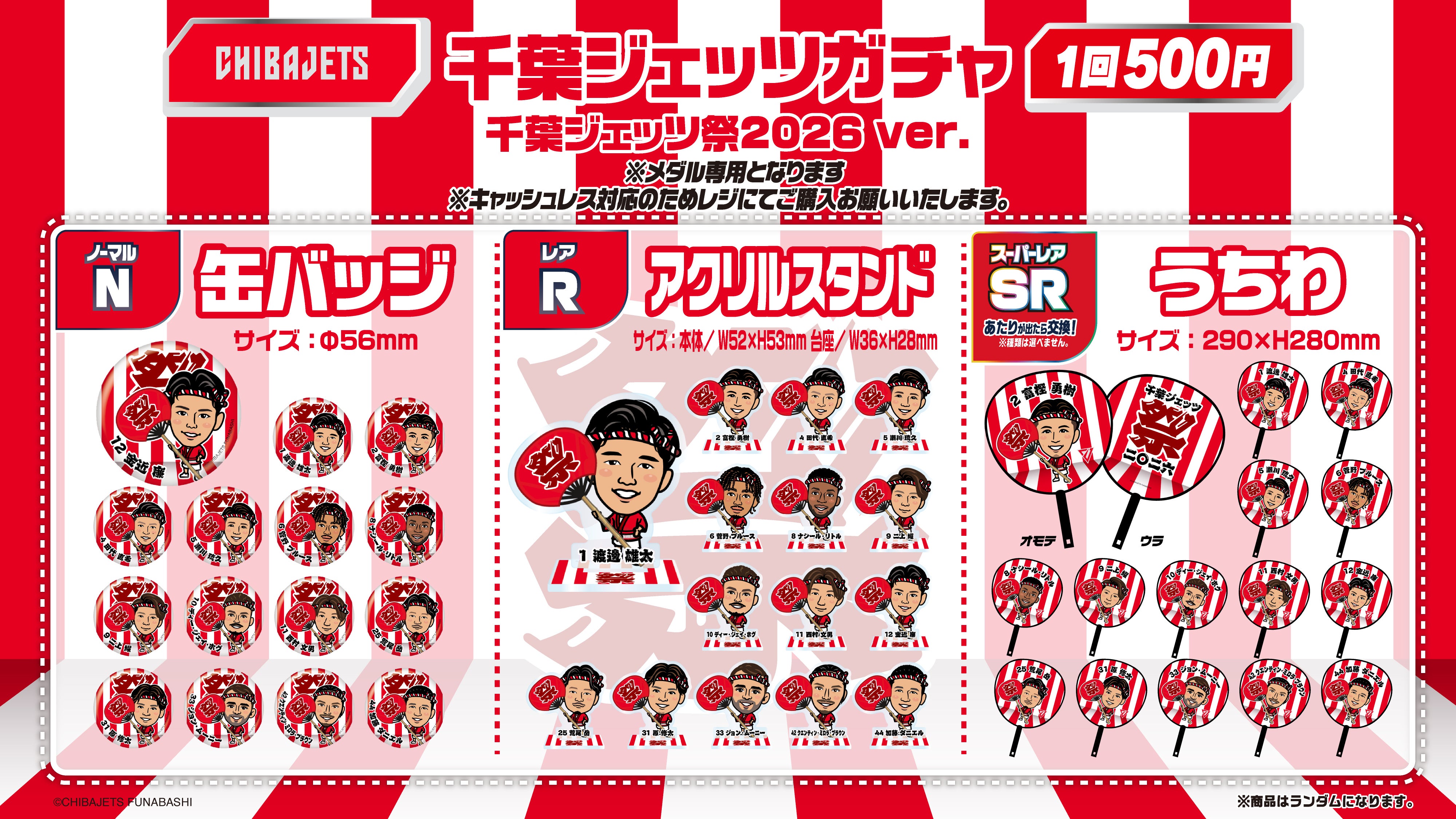2026年verデザインの法被、手ぬぐいを定番に、選手別デザインの提灯ライトキーホルダー(シークレット)&小判型ミニうちわ(シークレット)などをご用意しました。
