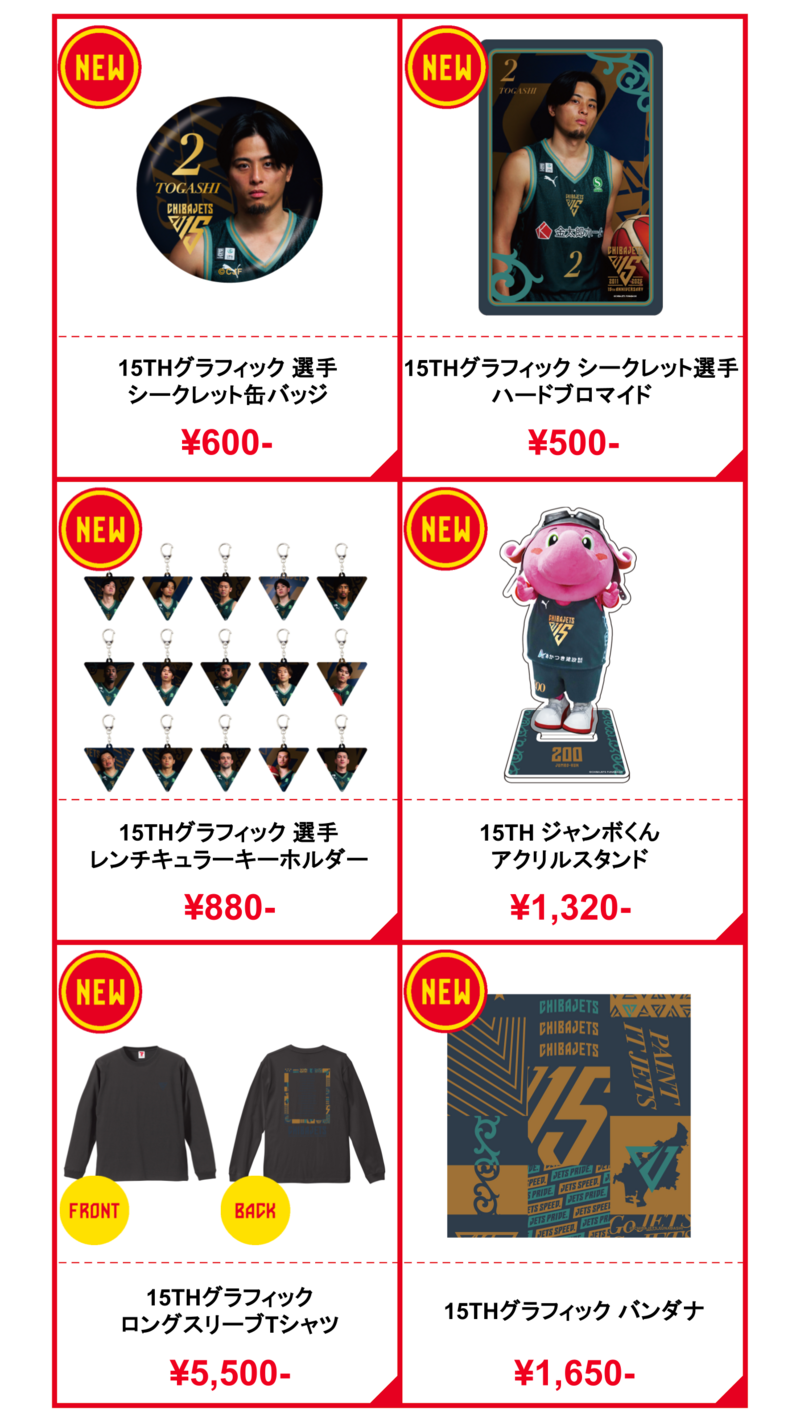 15周年記念ユニフォーム着用試合に合わせ、グラフィック&選手ビジュアルをデザインしたアイテムを発売します!