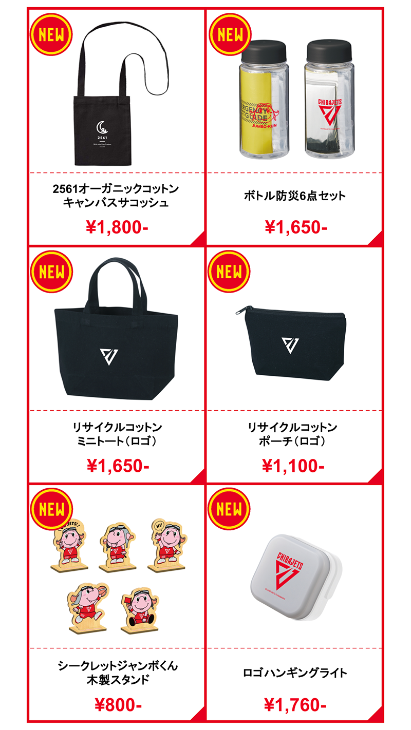 「持続可能な未来」と「備える意識」をテーマに、環境に配慮したリサイクルコットン製のポーチやミニトート、間伐材のヒノキを使用した「ジャンボくん木製スタンド」「防災関連グッズ」を発売!